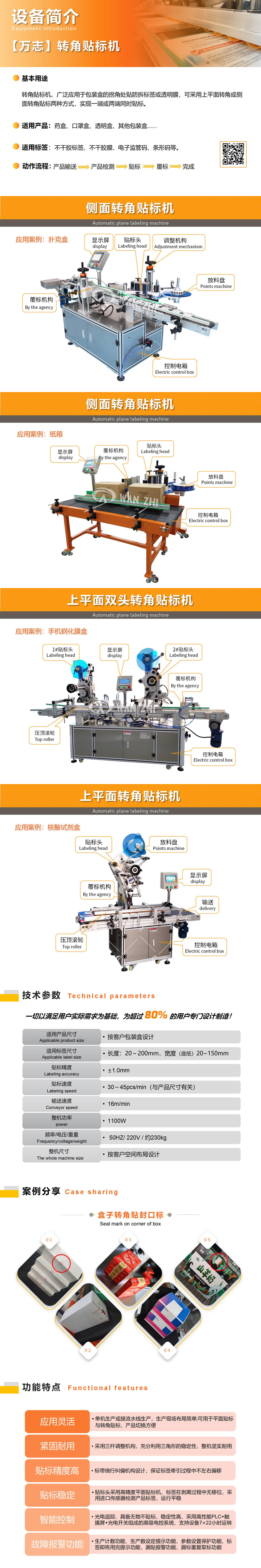 全自動紙箱單側(cè)面轉(zhuǎn)角貼標(biāo)機適用于紙箱等方形物體單面、轉(zhuǎn)角貼標(biāo),廣泛應(yīng)用于印刷制品、日化、電子、五金、食品、物流電商等行業(yè)。