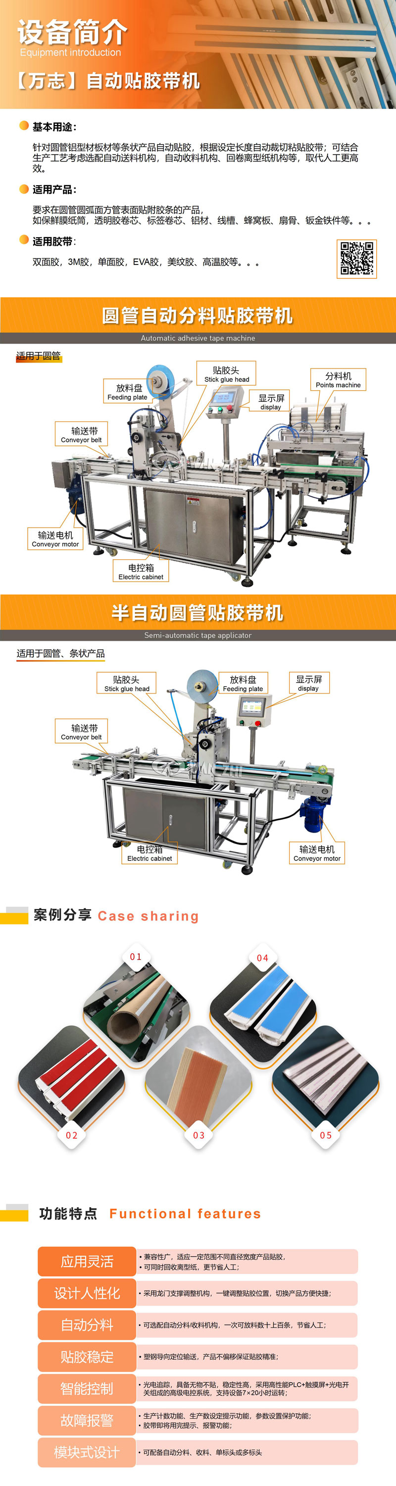 針對(duì)圓管鋁型材板材等條狀產(chǎn)品自動(dòng)貼膠,根據(jù)設(shè)定長(zhǎng)度自動(dòng)裁切粘貼膠帶;可結(jié)合生產(chǎn)工藝考慮選配自動(dòng)送料機(jī)構(gòu),自動(dòng)收料機(jī)構(gòu)、回卷離型紙機(jī)構(gòu)等,取代人工更高效。