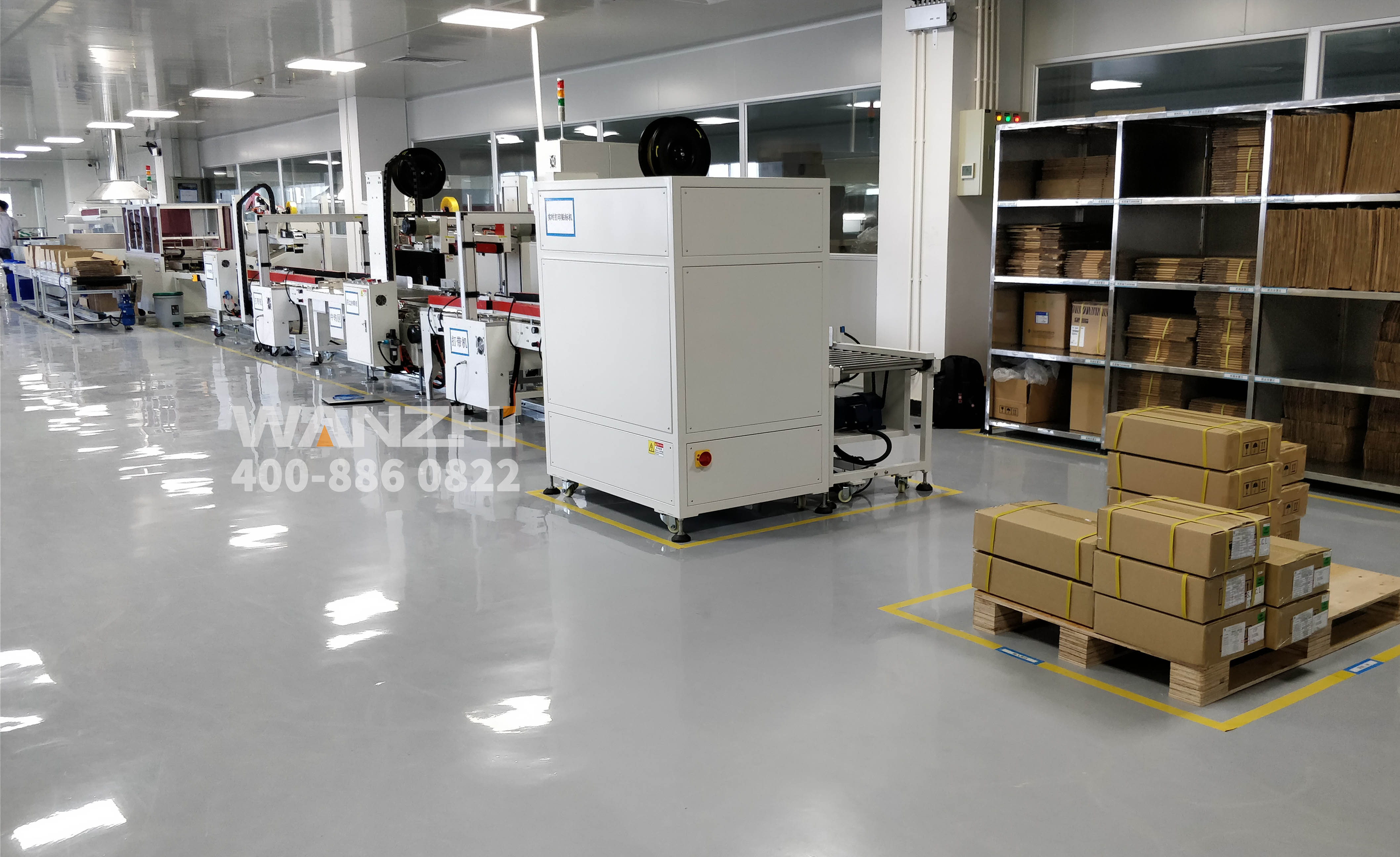這套后包裝生產(chǎn)線是為廣東某電路公司設(shè)計(jì)生產(chǎn)的整套自動(dòng)化生產(chǎn)線,項(xiàng)目包含:一字封箱機(jī)、扎帶機(jī)、工字封箱機(jī)、
