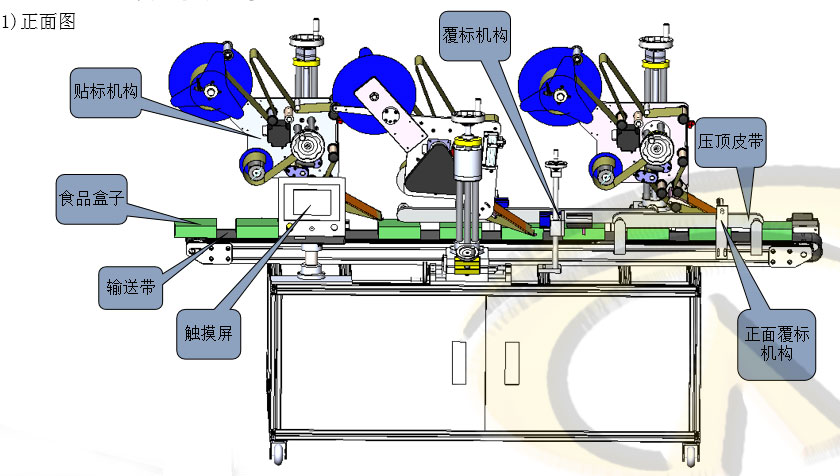 人工把食品盒子放到貼標(biāo)機(jī)輸送帶上即可,機(jī)器自動(dòng)完成食品盒子的輸送,導(dǎo)正,定位,貼標(biāo),覆標(biāo)動(dòng)作,人工再把成品取下。