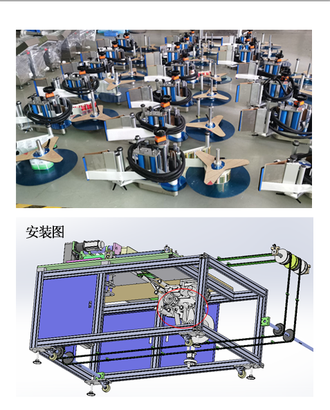 1. 安裝在打片機上,配套打片機使用的貼標頭,在口罩成型前貼上海綿條,速度可與打片機匹配,產(chǎn)能相比成型后貼要高出很多,詳情如圖示: