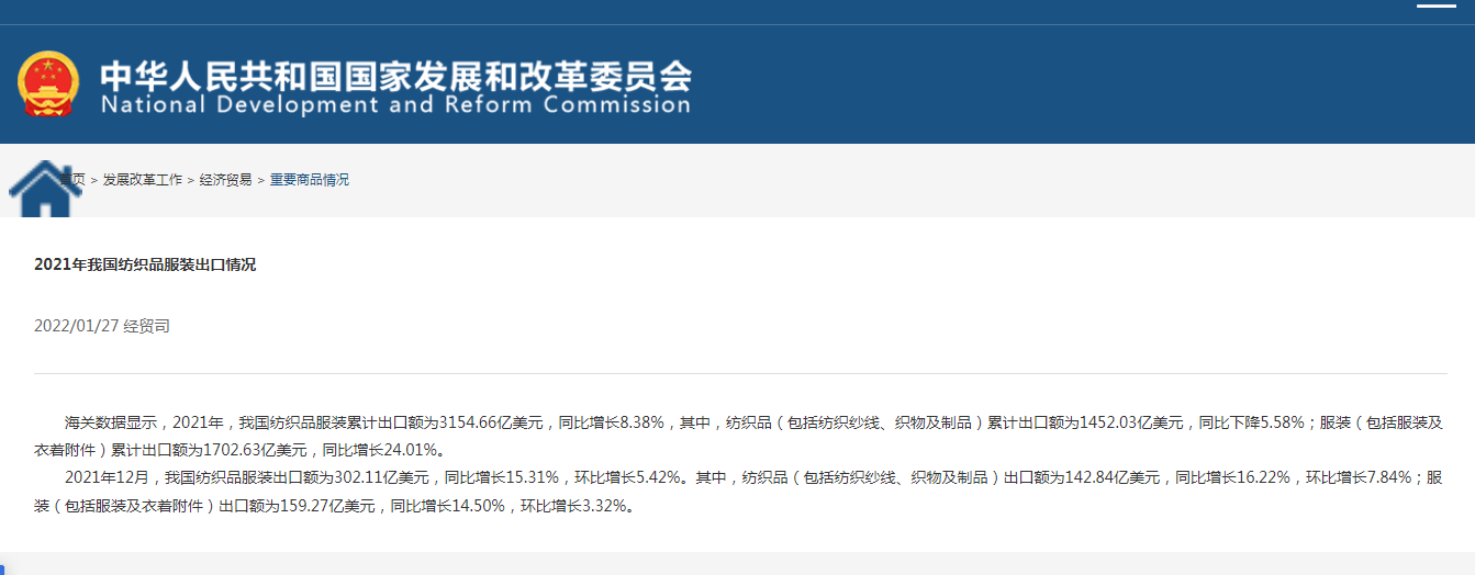 根據(jù)國(guó)家發(fā)改委官網(wǎng)2021年發(fā)布了一則紡織品行業(yè)出口數(shù)據(jù)可知:這兩年疫情影響,全球?qū)χ袊?guó)商品有了更大需求,不管是防疫抗疫物資還是服裝,都大量的從中國(guó)進(jìn)口。而服飾吊牌作為服裝包裝中的不可缺少的一部分,需求量也跟著上漲。