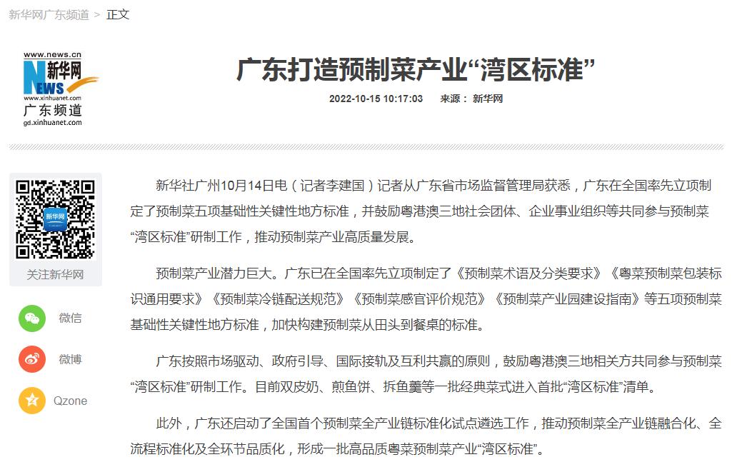 圖1:《廣東打造預制菜產業(yè)“灣區(qū)標準”》新聞報道來源