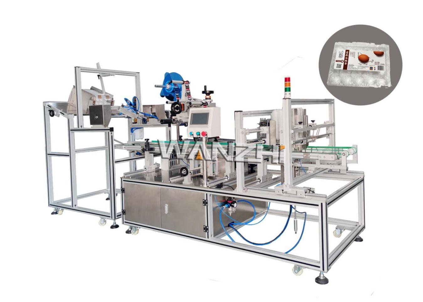 適用于吸塑包裝盒表面貼標,如水果盒、雞蛋盒等;機械手自動取盒送到輸送上進行貼標后自動收集產品,性能穩(wěn)定生產效率1200~2300件/小時;可單機使用,也可與前端注塑機連接使用。